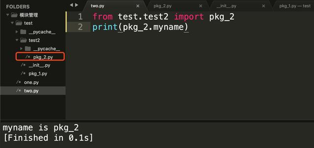 我打算在 two.py 中 import 跟他同一层目录下的test/pkg_1.py
