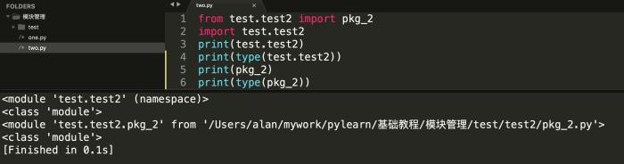于是语法变成了这样,在import前面加了一个from,它的中文意思其实就是 “从test 引入 pkg_1“。