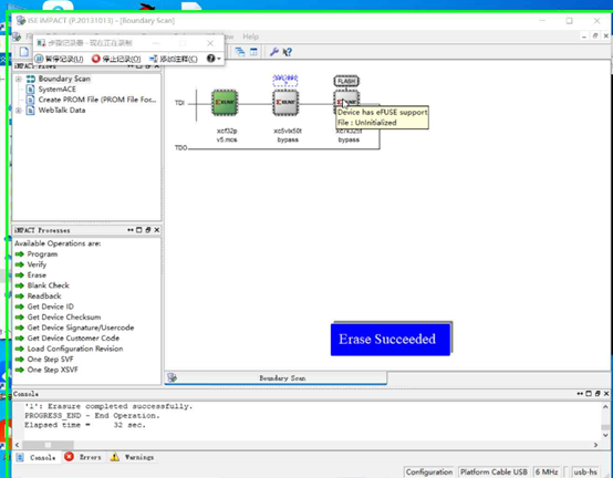 显示出Erase Succeeded后,擦除成功。