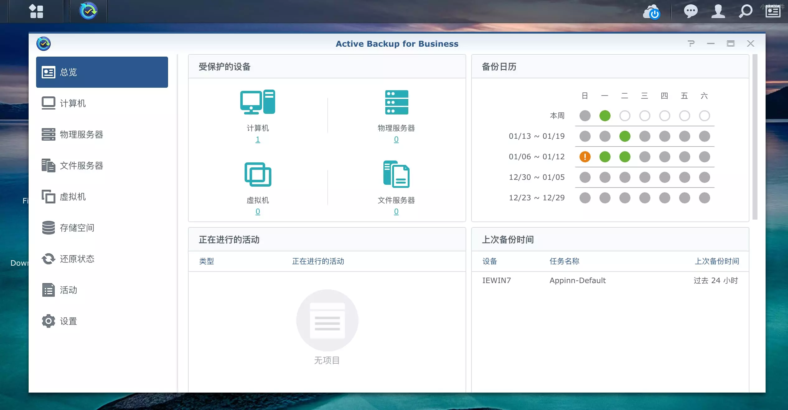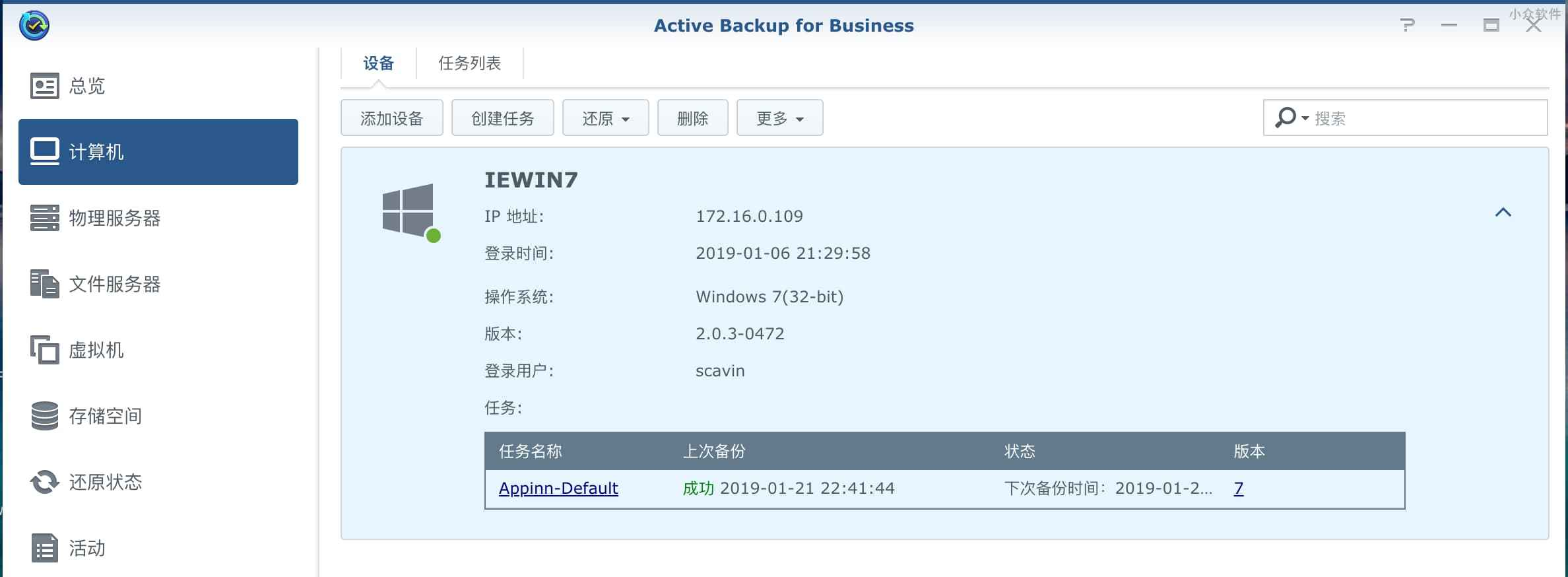 Active Backup for Business 会自动识别出已连接的客户端,并且会自动创建一个备份任务。