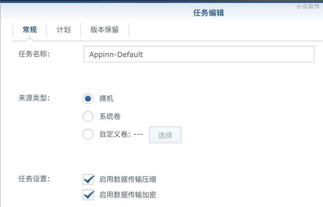 常规设置中最重要的就是来源类型了,这里代表着你想备份的内容: