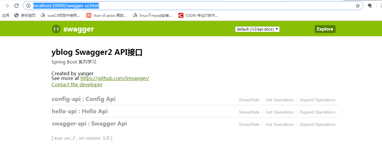 然后我们启动项目,输入http://localhost:10900/swagger-ui.html,也即项目访问路径 + /swagger-ui.html。