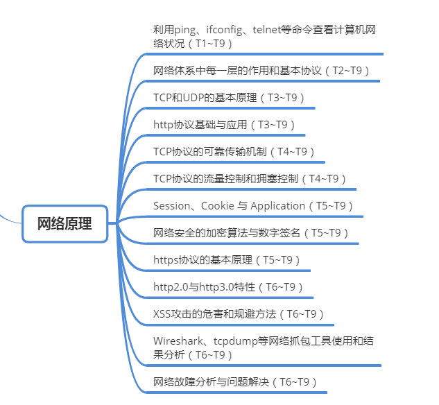 - Wireshark、tcpdump等网络抓包工具使用和结果分析(T6~T9)