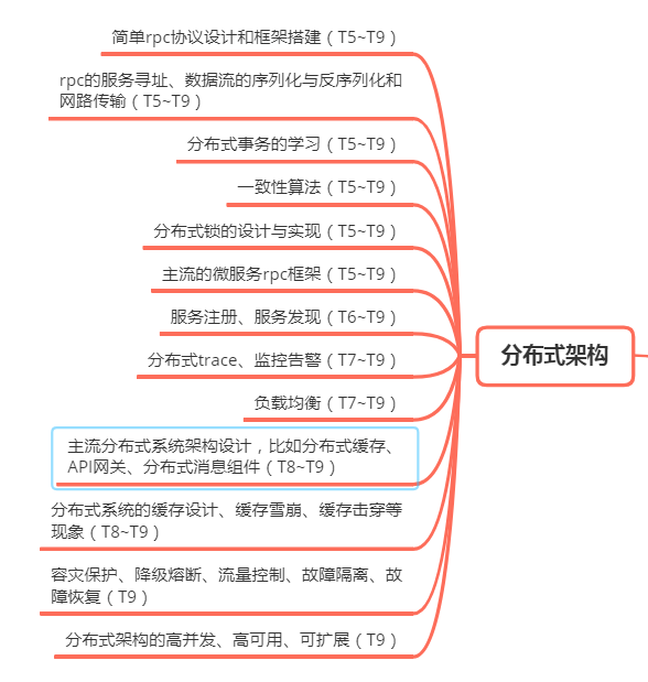 - 主流分布式系统架构设计,比如分布式缓存、API网关、分布式消息组件(T8~T9)