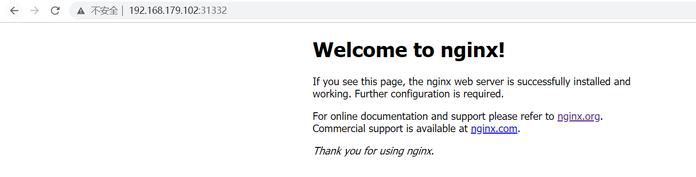 <title>Welcome to nginx!</title>如果要在集群外部浏览器访问要使用31332端口,通过任意一个节点的IP+端口,这个端口随机生成的,31332是对外暴露的端口,任意一个节点的ip加上该端口号就可以访问