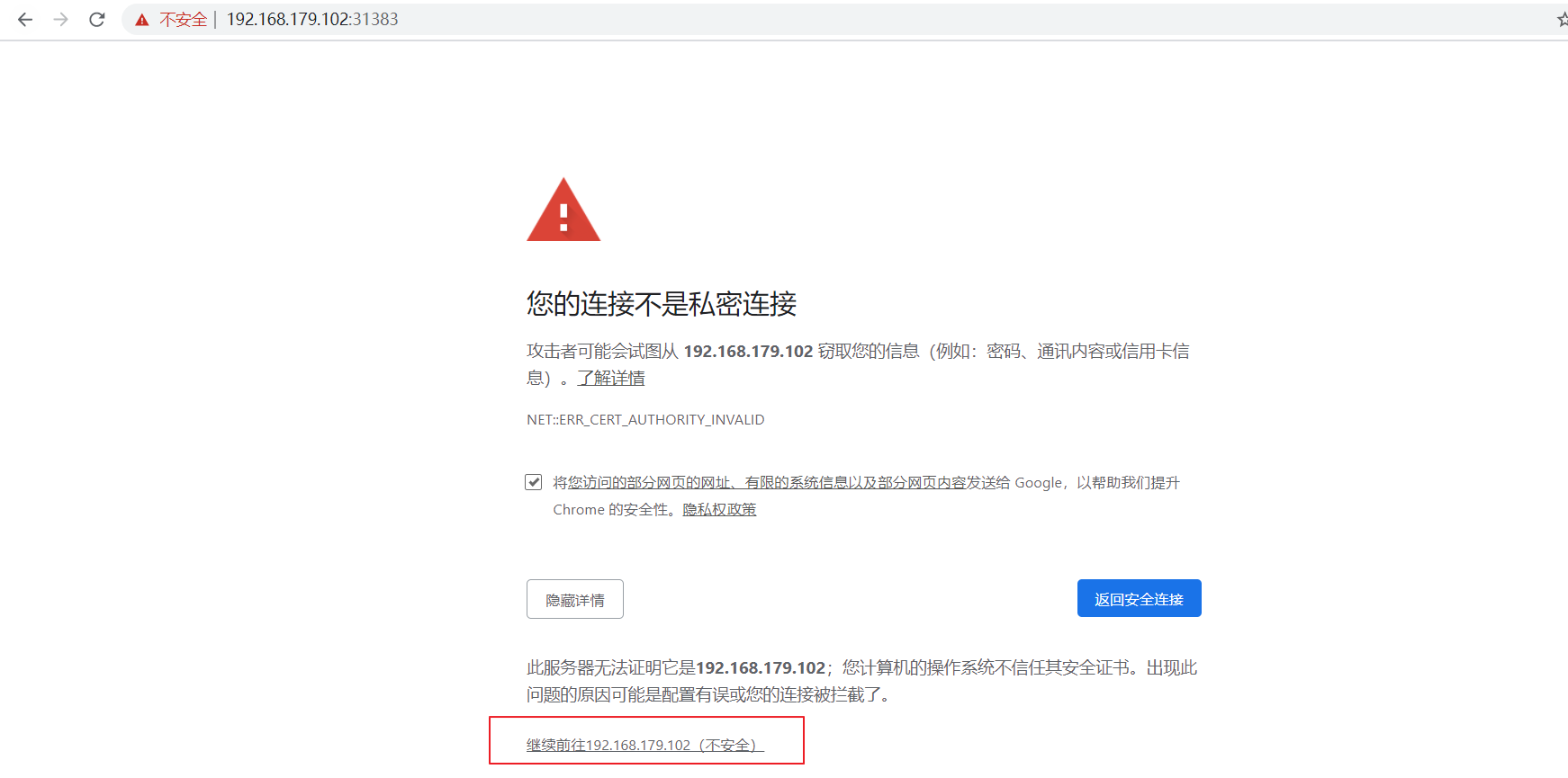 kubernetes-dashboard NodePort 10.106.187.194 <none> 443:31383/TCP 65s这里暴露的是443表示使用https访问,对外暴露端口是31383