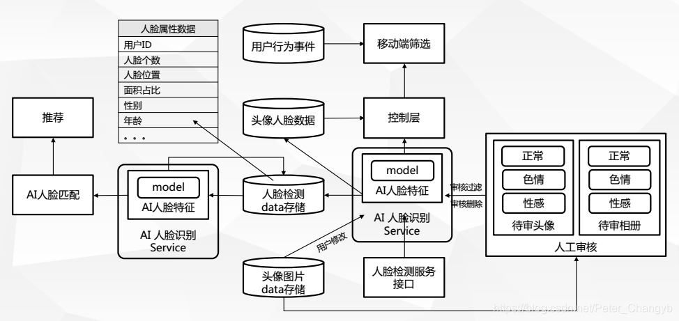 - 首先建立人脸的面像档案。即用摄像机采集单位人员的人脸的面像文件或取他们的照片形成面像文件,并将这些面像文件生成面纹(Faceprint)编码贮存起来。