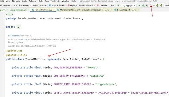 micrometer-core中有个TomcatMetrics类,会将tomcat的指标注册进去。