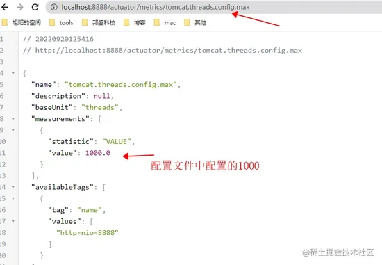 | tomcat.threads.config.max | tomcat中配置最大的线程数 | 显示在监控页面 |