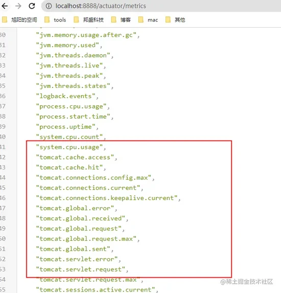 请求 http://localhost:8888/actuator/metrics ,可以查看监控信息: