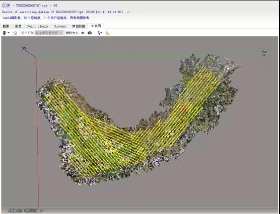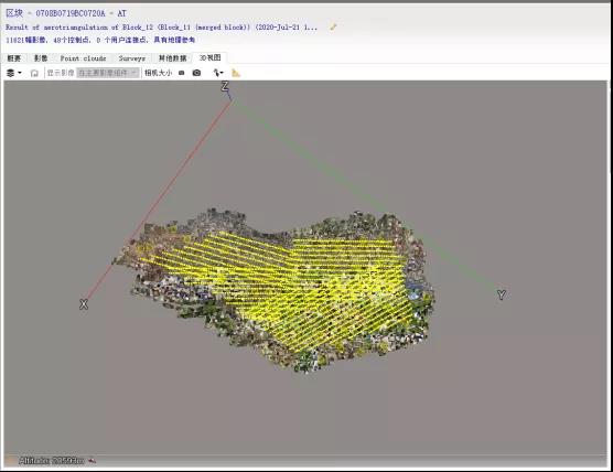 在基于Context Capture系统进行空三加密运算时,可分为多个区块进行运算。本项目共分为6个区块进行空三加密计算。仅以3个区块为例: