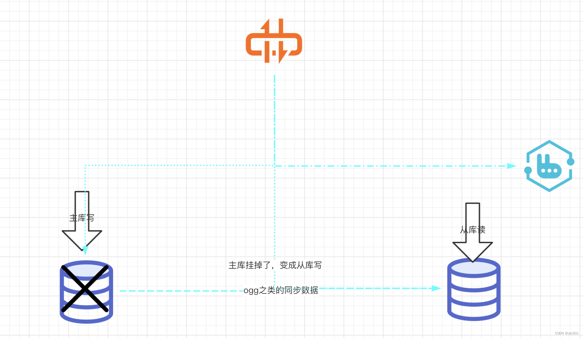 左边是主库,右边是从库,主库挂了那么新的写要切到右边