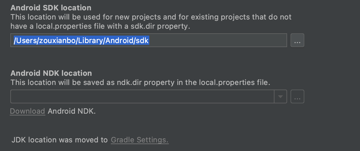 期间一直现在 androd studio 里 直接选择jdk 的,但是找来照去没找到地方,在info.list里改classpath 居然,studio 就起不来了,网上的 是说file->project structue-》sdklocation ,但是这个版本 studio 真是没有