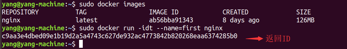 $ sudo docker run- -i:表示运行容器