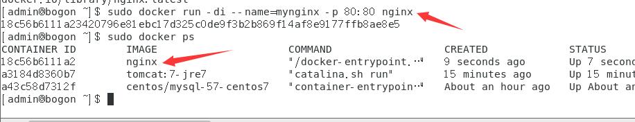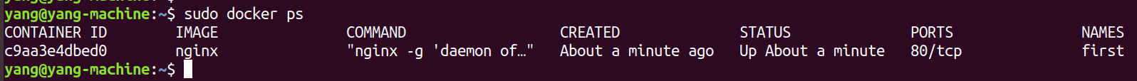 $ sudo docker run -di --name=mynginx -p 80:80 nginx