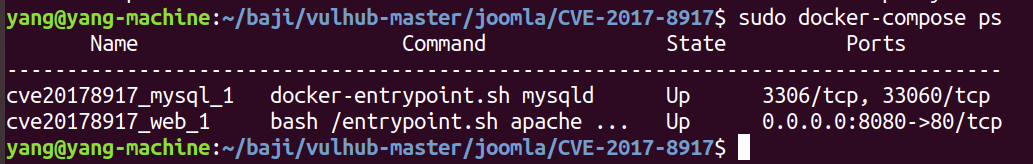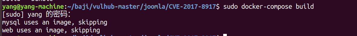 yang@yang-machine:~/baji/vulhub-master/joomla/CVE-2017-8917$ sudo docker-compose up -d