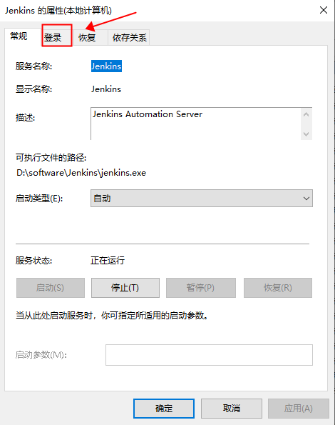 3、双击打开jenkins服务,进入“登录”模块