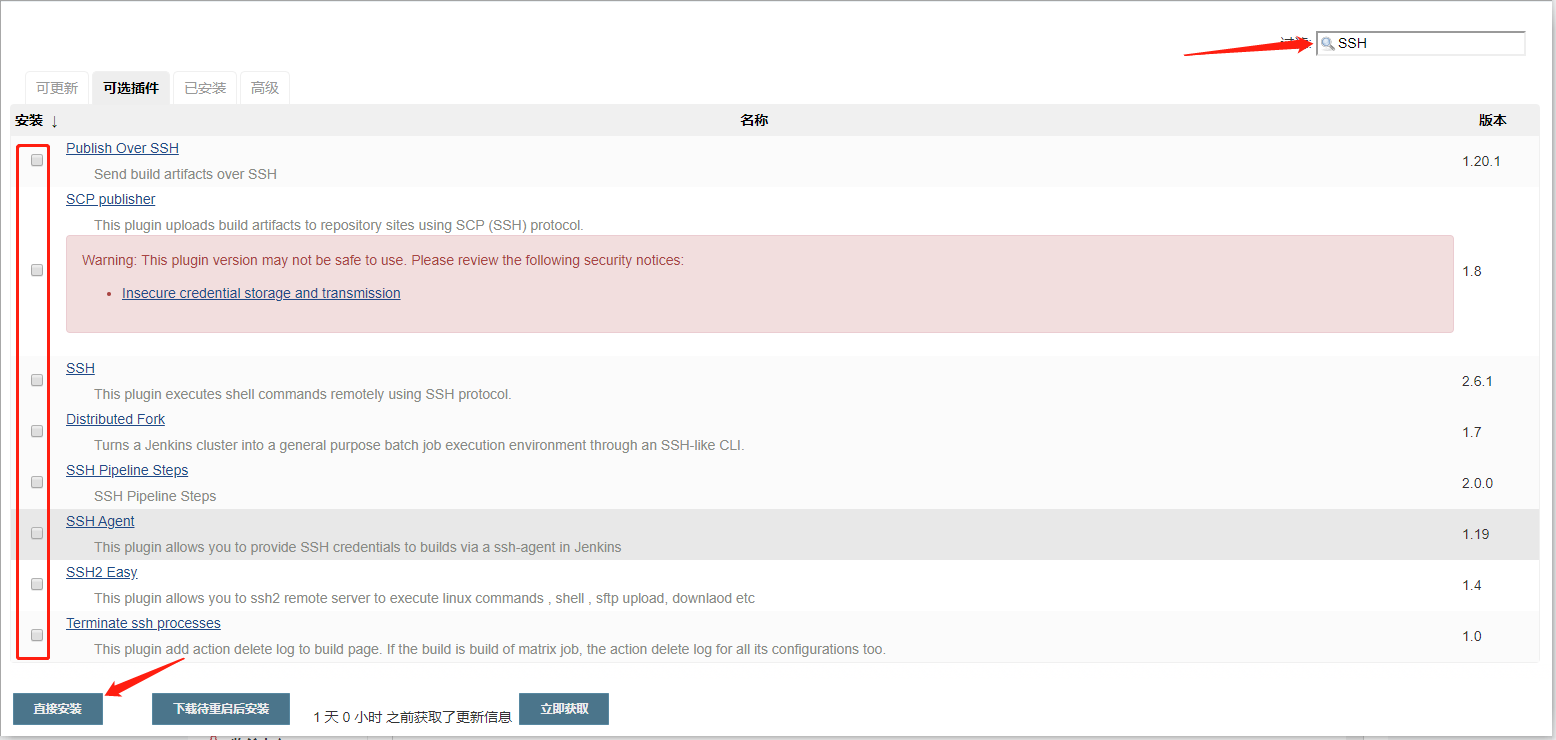 (5)再去jenkins上将所有的SSH插件安装上,再重新构建一次即可。