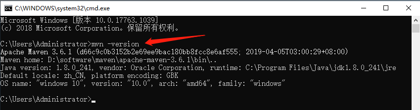 (3)打开cmd窗口,执行命令:mvn -version,若能看到maven的版本信息,则说明maven安装成功,且环境变量配置正确
