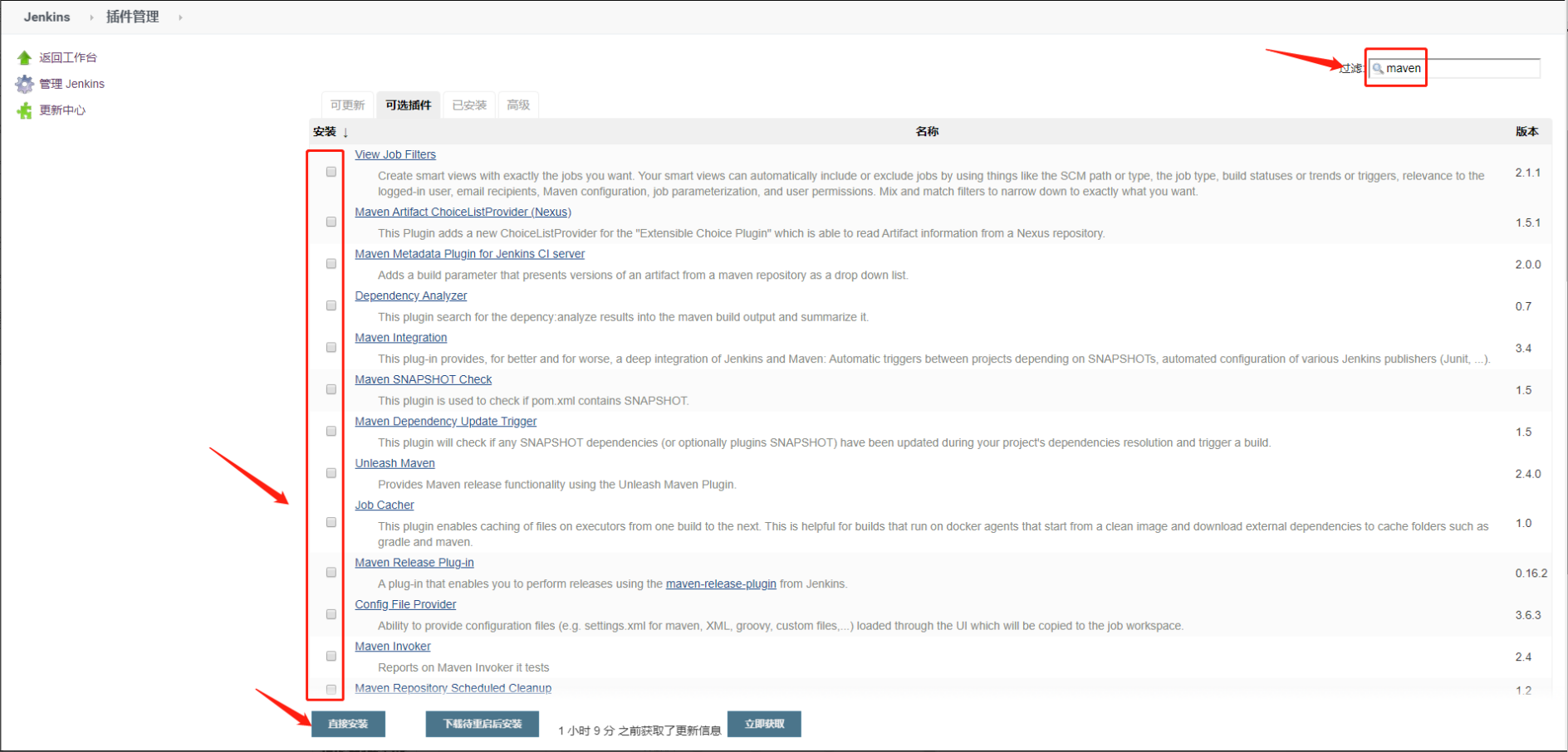 (4)再去安装Jenkins上将所有的maven插件安装上,再次构建即可。