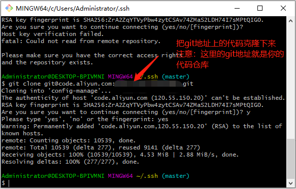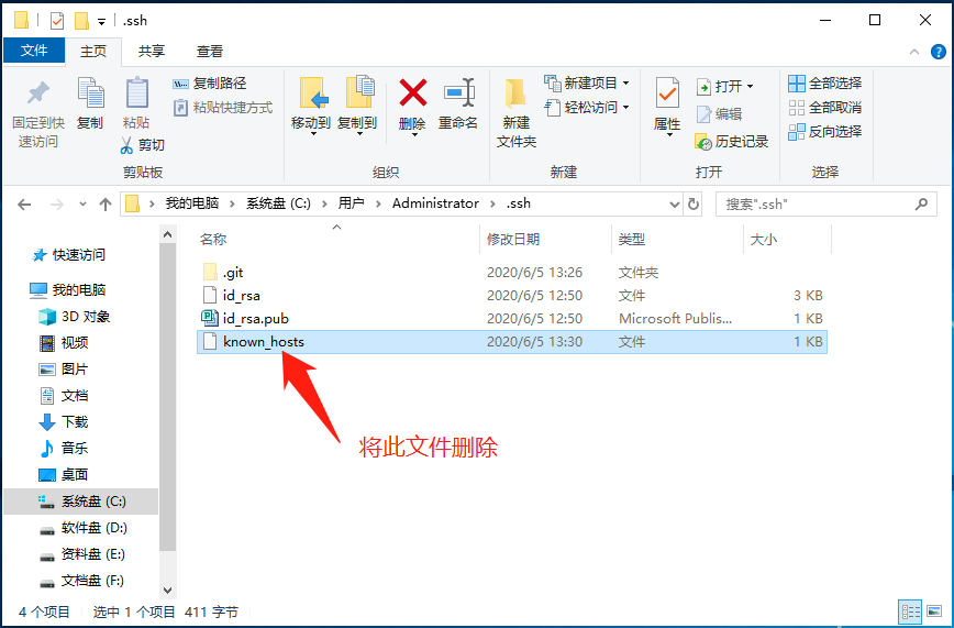 1、进入C:\Users\Administrator\.ssh目录下,将known_hosts文件删除