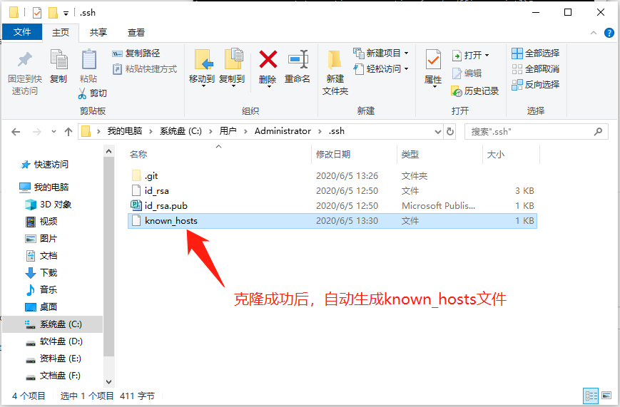 3、查看C:\Users\Administrator\.ssh目录下,自动重新生成的known_hosts文件
