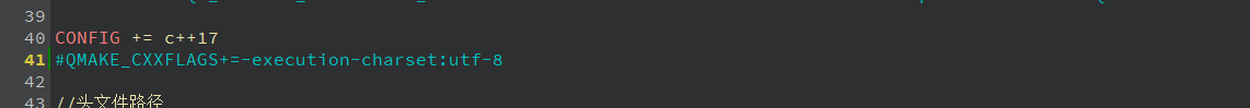 在pro工程文件中加入 : QMAKE_CXXFLAGS+=-execution-charset:utf-8