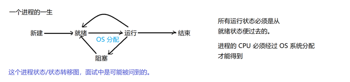 运行->结束: 进程的最后一条指令执行结束 (粗略地理解,就是main方法执行结束了)