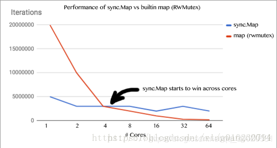 rwmap.Unlock()下面是有人做的两种map性能对比图: