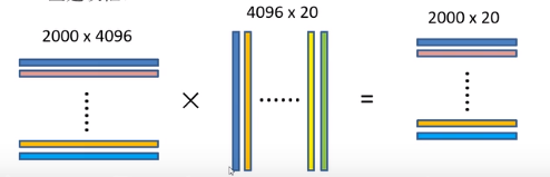此处第一个2000x4096矩阵的每一行为一个候选框通过cnn得到的特征向量,一共有2000个候选框,所以有2000行;