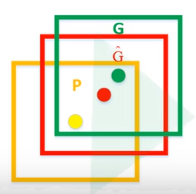 如图,黄色框口p表示建议框region proposal,绿色窗口G表示实际框gt,红色窗口G^表示Rrgion proposal进行回归后的预测窗口,可以用最小二乘法解决的回归问题