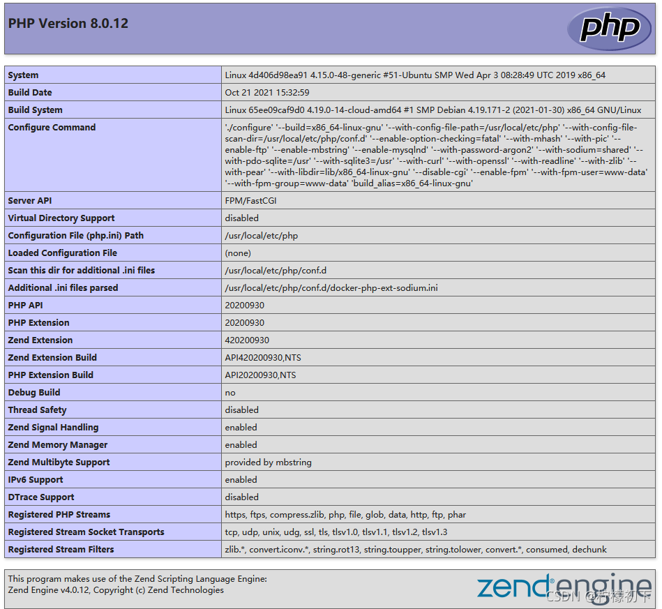 docker cp php-fpm:/usr/src/php-8.0.12/php.ini-production php.ini6、重新启动php-fpm容器