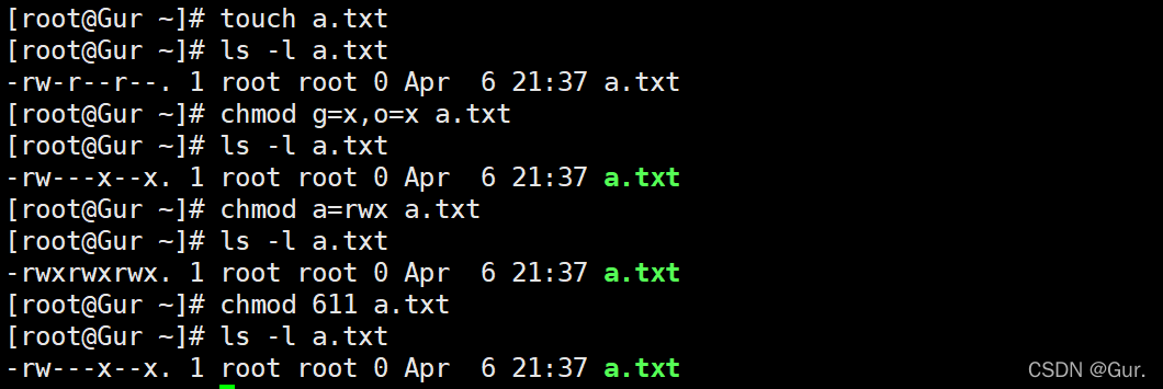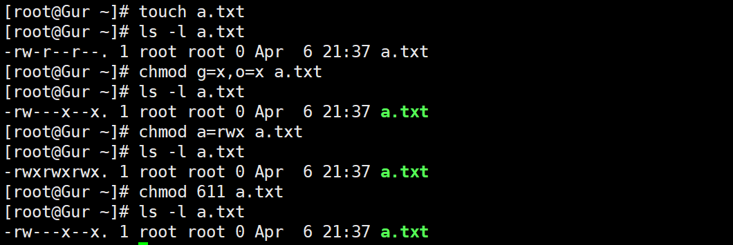 2.创建文件,并赋予权限611(两种方式,一种guoa,一种nnn)
