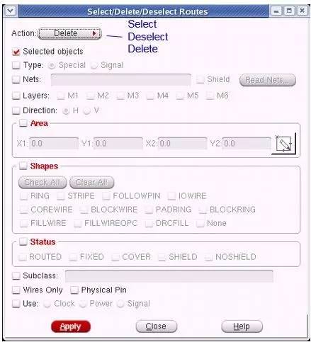 ,快捷键是D,这个就是可以让用户自定义地去select/deselect/delete wires. 主要可以基于以下form去选择。对应的命令是editSelect/editDeselect/editDelete