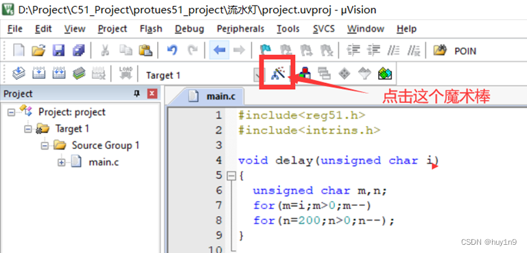 在综合调试部分,我将教大家如何把代码烧录到硬件里,最后实现我们的流水灯效果。