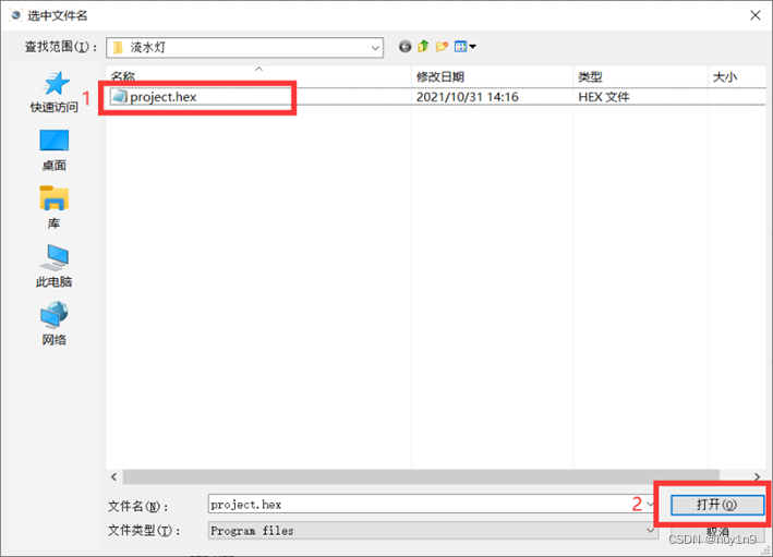 进入编辑界面,我们在Program File里找到我们刚刚生成的hex文件