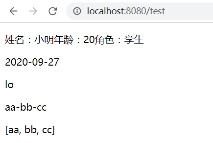 <p th:text="${'姓名:'+user.name + '年龄'+user.age + '角色:'+user.role.roleName}"></p>