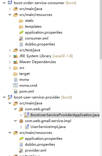 在SpringBoot配置文件一文第【11】项提到了使用@ImportResource注解导入Spring的配置文件。这里我们就可以采用该中方式,将dubbo的xml配置文件引入进来,取消application.properties中的dubbo配置和相关注解。