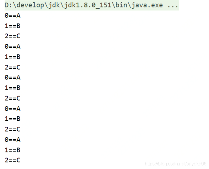 //进行判断,0号线程打印A,1号线程打印B,2号线程打印C