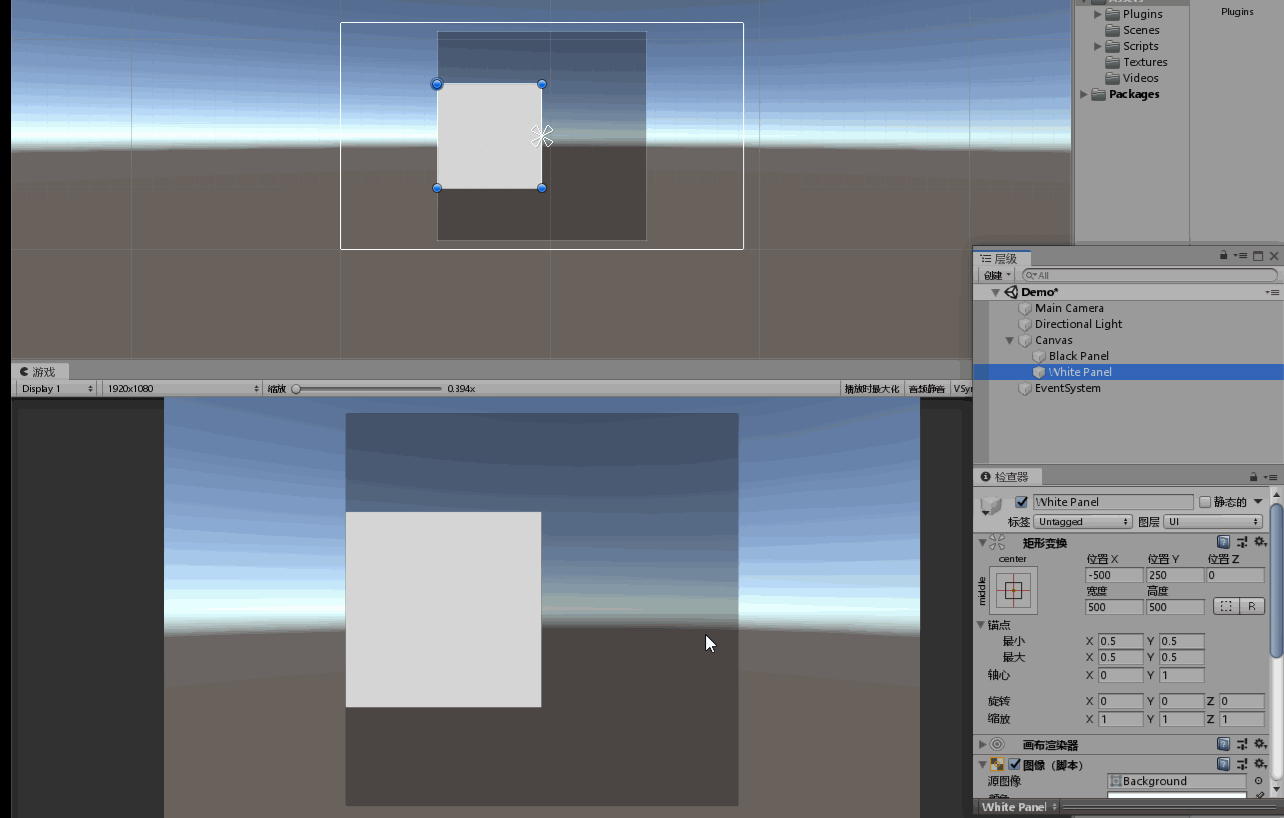 可以看到,由于没有对UI的拖拽范围做任何的限制,所以现在可以将UI的一部分或者全部拖出屏幕,这当然不是什么好的体验,所以在有些情况下我们需要对UI的拖拽范围做一些限制,我们先从将UI限制在屏幕范围内开始。