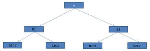 集成从中间层开始,同时向上和向下移动。在我们的图中,我们的测试将从B1和B2开始,其中一个臂将测试上部模块A,另一个臂将测试下部模块B1C1,B1C2和B2C1,B2C2。