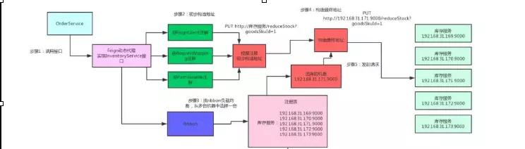 说完了Feign,还没完。现在新的问题又来了,如果人家库存服务部署在了5台机器上,如下所示: