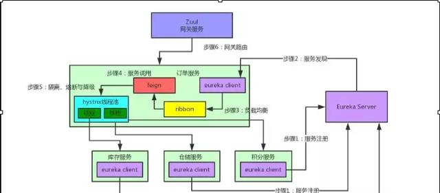 好!有了业务场景之后,咱们就一起来看看Spring Cloud微服务架构中,这几个组件如何相互协作,各自发挥的作用以及其背后的原理。