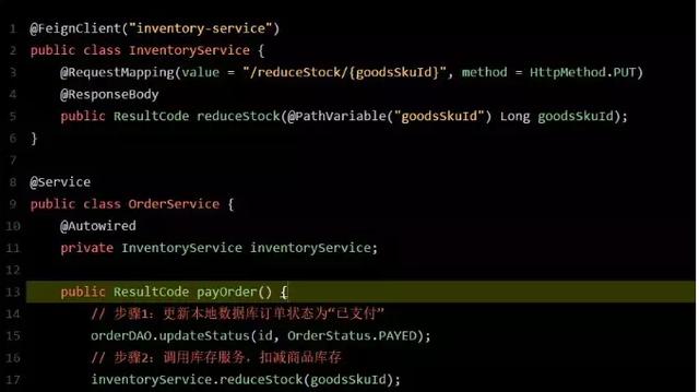 既然如此,那怎么办呢?别急,Feign早已为我们提供好了优雅的解决方案。来看看如果用Feign的话,你的订单服务调用库存服务的代码会变成啥样?