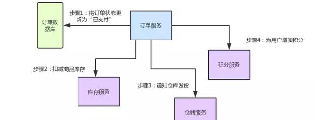 - 用户针对一个订单完成支付之后,就会去找订单服务,更新订单状态