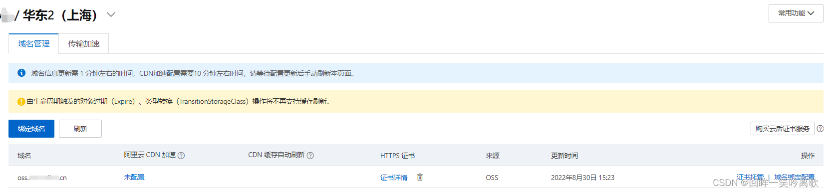 问题就出在这里。域名绑定配置 您需要域名解析,将用户域名CNAME 指向OSS 外网访问域名