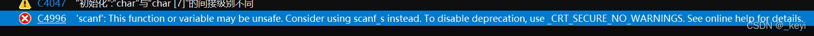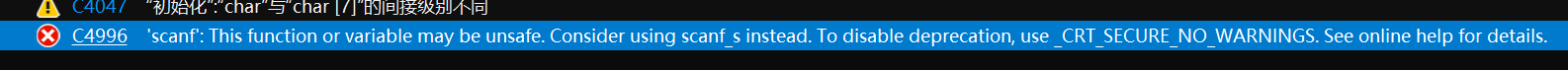 相信很多人遇到过使用scanf提示错误的情况