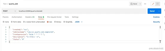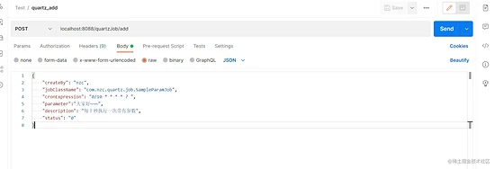 我们直接来测试添加定时任务的接口,先来个不用参数的吧