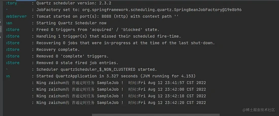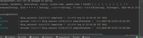 log.info(String.format("Ning zaichun的 普通定时任务 SampleJob ! 时间:" + new Date()));