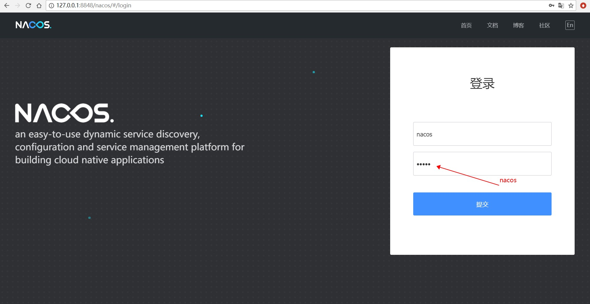 1)从官网https://github.com/alibaba/nacos/releases下载nacos-server-0.9.0.zip或者0.8.0.zip,我这里用的8。下载完毕后解压,打开bin目录下,双击startup.cmd启动,访问http://127.0.0.1:8848/nacos可以看到nacos登陆页面,默认账户名和密码都是nacos